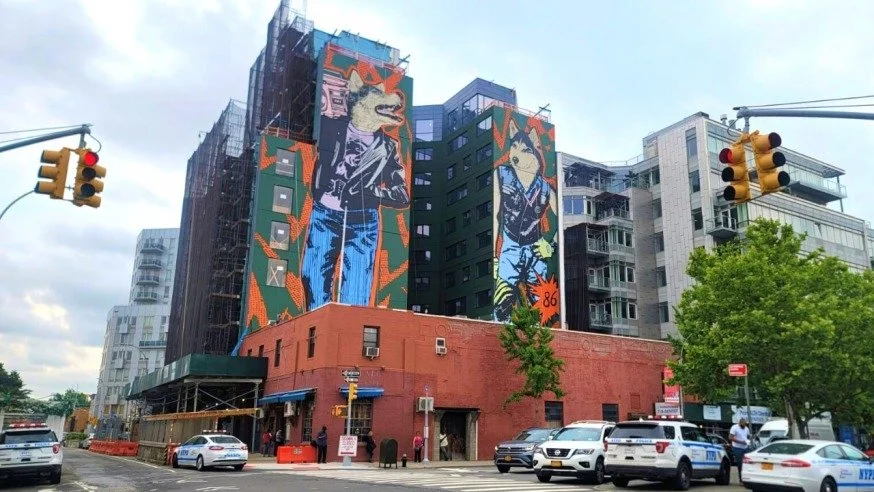 Three Large Murals Going up on New 12-Story Apartment Building in LIC